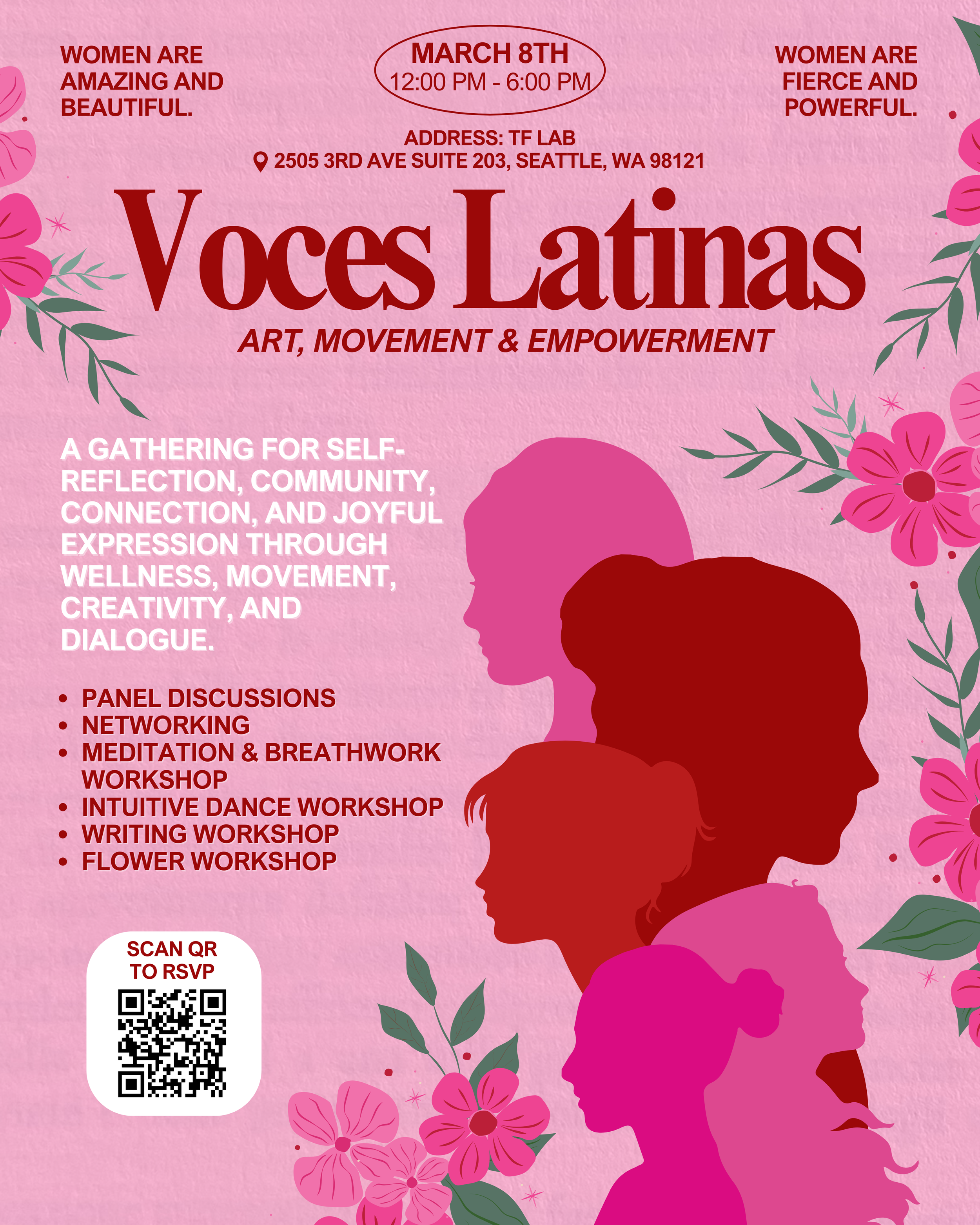 Voces Latinas exists to create intentional spaces where Latina women come together to share stories, lived experiences, and knowledge through art, movement, wellness, and dialogue. Our mission is to amplify Latina voices, foster connection, and cultivate collective healing, empowerment, and visibility within our communities.